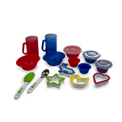 After years of development and real-world testing, the Curious Chef collection of kid-friendly kitchen tools was born. Our complete Curious Chef line encompasses an assortment of uniquely designed cooking products by creating "real kitchen tools for kids". We incorporate the elements of safety and vibrant color throughout our entire line and every piece in our collection is easy to grip and is sized for small hands. Just mix and match any number of items or any number of themed sets to meet all your culinary needs. This Curious Chef 15 piece dessert set includes the following items: 2 ice cream bowls and rootbeer float mugs, 3 piece prep bowl set, 2 silicone pinch bowls, 4 cookie cutters, ice cream scoop and silicone spoon. It also includes an easy-to-follow recipe on box. It is appropriate for children ages 5+ and conforms to safety requirements of ASTM F963 and CPSIA lead and phthalate limits. This product is BPA free and dishwasher safe.