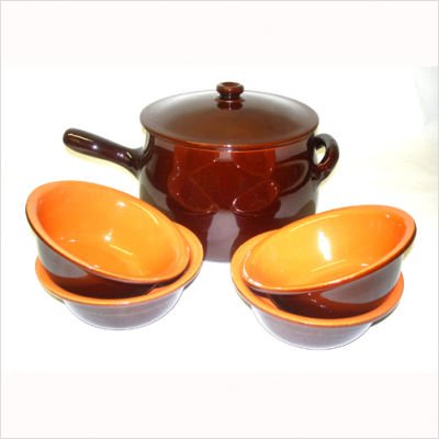 4QCSNSET1-MRCR Heat Diffuser: None This is a wonderful cookware set from Piral! It includes a 5.5 Quart Stew-Soup Pot with Extended Helper Handle and four individual bowls in chocolate. These items are crafted from high-quality Italian terracotta. They are usable in the oven, microwave, and on top of the stove. The Piral cookware set is perfect to have to prepare different types of dishes! Set Includes: -1 5.5 Quart Stew-Soup Pot with Extended Helper Handle -4 Individual Bowls Features: -Chocolate finish -Made for the oven, microwave, and stove-top -Nonstick crystalline finish -Non toxic materials -Uses less energy due to the great heat conductivity of this fine terracotta -Proposition 65 Approved -For use with electric range-tops, heat diffuser is recommended to avoid hot spots Specifications: -Material: Terracotta -Cleaning and Care: Dishwasher safe -Made in Italy The Creation of Each Piece.wmv The Story of Piral's Italian Factory